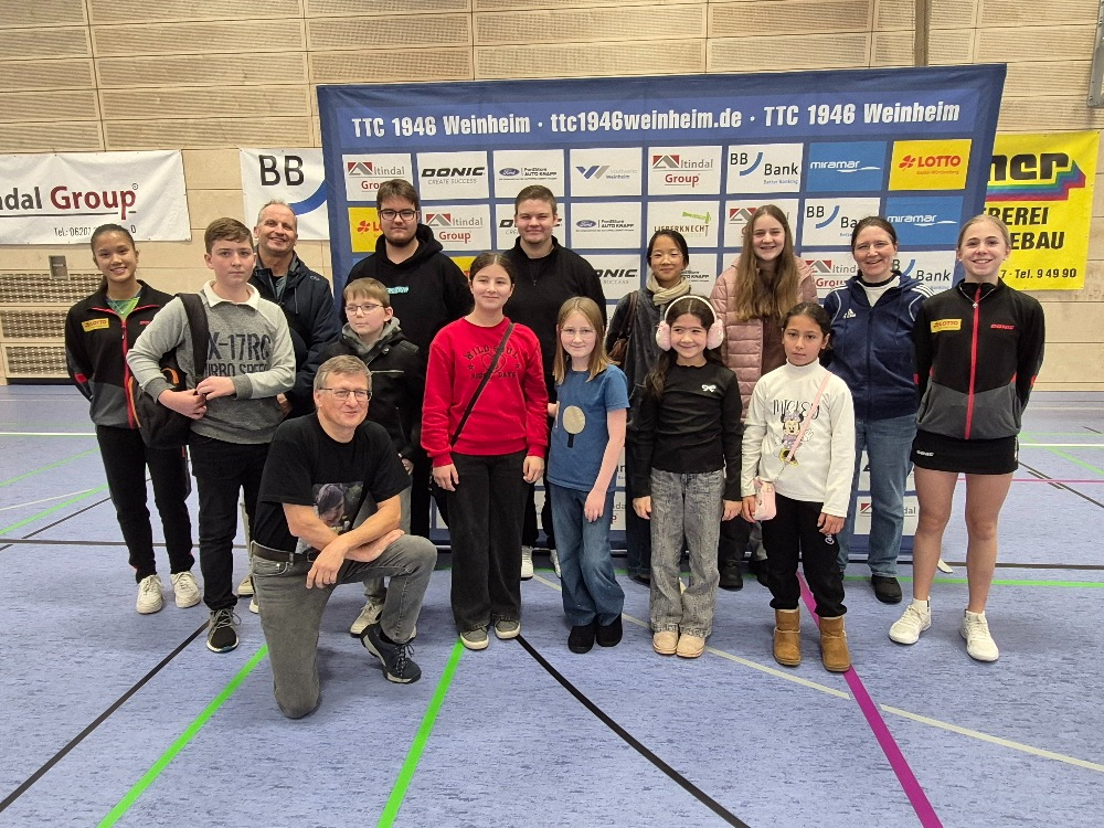 Mit der Bahn ging es zum amtierenden Deutschen Meister TTC Weinheim zum Heimspiel der Bundesliga-Damen gegen den TSV Langstadt. Dass Weinheim verletzungsbedingt auf seine Spitzenspielerin Yuan Wan verzichten musste, die gerade mit der Deutschen Nationalmannschaft den Europameistertitel geholt hatte, war für die Eberbacher Zuschauer Fluch und Segen zugleich, denn dafür durfte der Weinheimer Nachwuchs an die Platte.